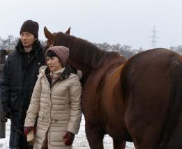 好子さんと一緒に出ているこの馬・バーズくんは、なかなかハンサムな顔立ち。映画「北の零年」で吉永小百合さんとも共演していて、スタッフからも「大女優とばかり共演している馬」と呼ばれていました。