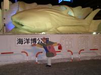 映画「南極物語」でも有名なタロとジロの雪像を前に写真をパチリ!