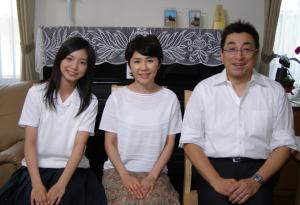 左から 主演の入来茉里さん、好子さん、お父さん役のFBS古賀アナウンサー