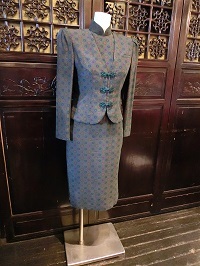 好物だった中華料理ということで、好子さんのチャイナ服も会場内に飾られ参加しました。等身大パネルとともに、記念写真ではひっぱりだこ。